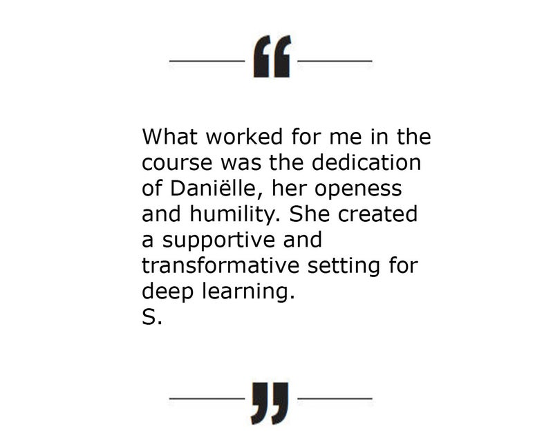 Een jaaropleiding kan je enorm ondersteunen om The Work op regelmatige basis te beoefenen en om stapje voor stapje je innerlijke leerproces te verfijnen en te verdiepen. De groep kan je helpen met gelijkgestemden op structurele basis te oefenen, om ervaringen met elkaar te delen en van elkaar te leren. Daarnaast oefen je ook andere groepsleden te coachen in The Work.